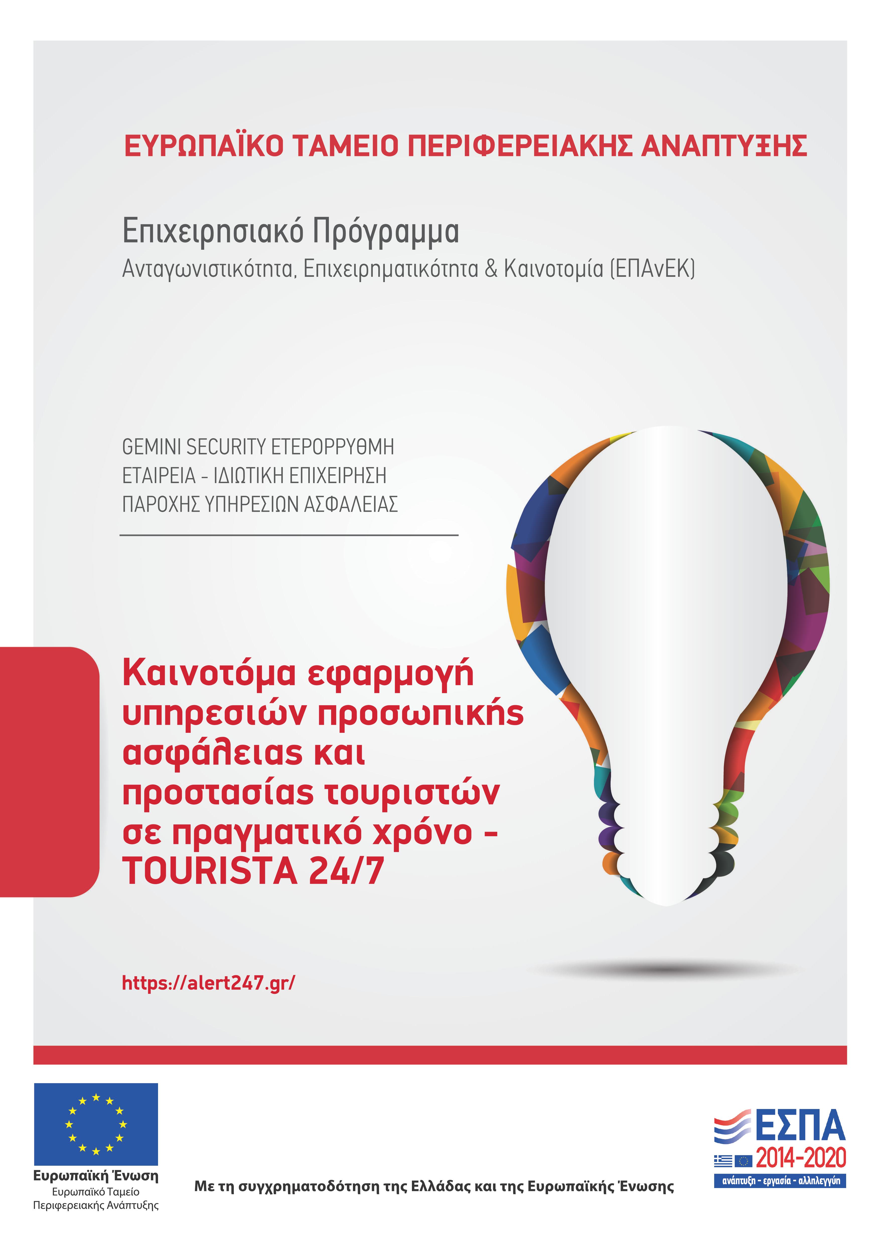 Καινοτόμα εφαρμογή υπηρεσιών προσωπικής ασφάλειας και προστασίας τουριστών σε πραγματικό χρόνο – TOURISTA 24/7, με κωδ. Έργου Τ1ΕΔΚ-01167